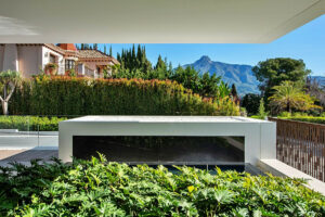 Diseñada con una arquitectura elegante y minimalista, la villa cuenta con un amplio espacio diáfano, ventanales de suelo a techo y una perfecta integración entre el interior y el exterior. El solárium ofrece impresionantes vistas al Mediterráneo, mientras que el exuberante entorno paisajístico realza la sensación de privacidad y tranquilidad.