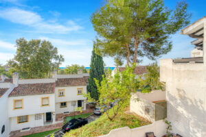 Esta encantadora casa adosada de tres dormitorios, orientada al sur, está situada en la codiciada comunidad cerrada de El Capricho en la Milla de Oro de Marbella, que ofrece amplios jardines tropicales y dos piscinas comunitarias. Idealmente situado a poca distancia de la playa, bares y restaurantes, y a poca distancia en coche del centro de Marbella y Puerto Banús, la propiedad combina comodidad con encanto. La planta baja cuenta con una luminosa sala de estar y comedor con chimenea y acceso a una amplia terraza perfecta para comer al aire libre, una cocina independiente y un aseo de invitados. Las escaleras conducen a un gran sótano actualmente utilizado como un dormitorio y estudio de arte con su propio baño. Arriba, la suite principal está acompañada de dos dormitorios y un baño familiar. Destacados adicionales incluyen armarios empotrados, suelos de mármol y estacionamiento privado para un coche.