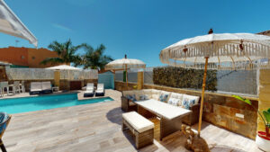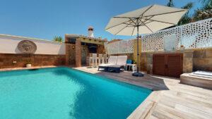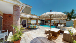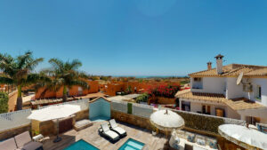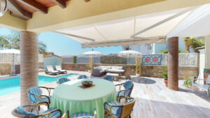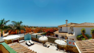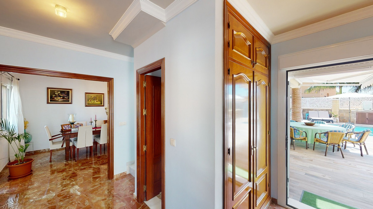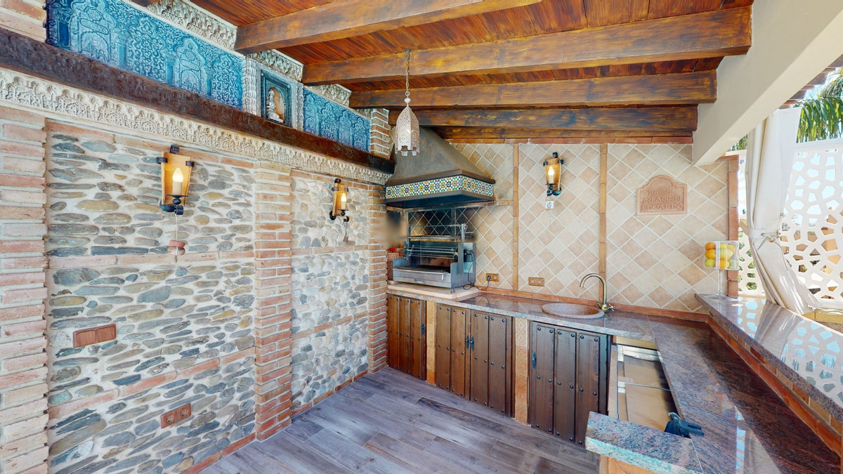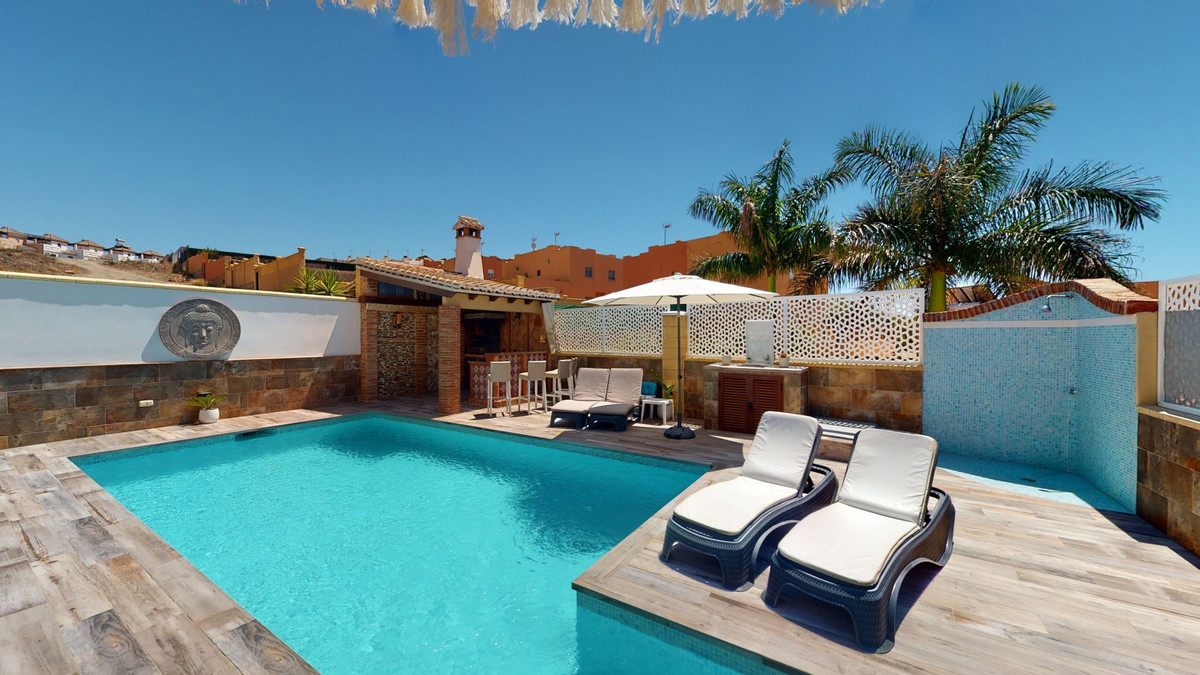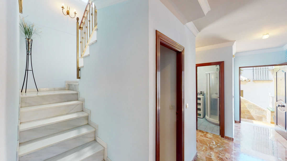 Casa Pareada hermosamente renovada en la tranquila zona residencial de Viña Málaga. La propiedad cuenta con 2 acceso a una vivienda de 3 plantas con 3 habitaciones, 3 cuartos de baño, un aseo 2 cocinas, un salón, una zona de cine, 3 zonas de relax en el exterior, una piscina y una zona de barbacoa. En la planta baja hay un garaje doble que ahora se está utilizando como cine, también cuenta con una zona de gimnasio, una cocina y un aseo. Esta parte se puede utilizar para organizar quedadas con amigos, un apartamento independiente con 2 habitaciones… también tenemos acceso directo desde el garaje al primer piso. El primer piso tiene un hall de entrada con guardarropa, baño con ducha, cocina amueblada con todos los electrodomésticos modernos y salida al balcón, sala y comedor con chimenea y desde el salón hay una salida a la hermosa zona exterior. Allí encontrará el gran patio con muchas áreas para sentarse y descansar alrededor de la piscina de 4 x 8 m, ducha al aire libre y hermosos adornos. También hay un bar rústico y una zona de barbacoa con agua y electricidad. Por la noche, todo tiene una iluminación romántica y es maravilloso cenar al aire libre con la familia y los amigos. En el segundo piso se encuentran los tres dormitorios, uno de los cuales tiene vestidor y baño privado. Cada habitación tiene su balcón con vistas al mar. La propiedad ha sido construida en el 2002 y recientemente renovado. No pierdas la oportunidad de visitar este maravilloso pareado a 5 minutos de la playa, autovía y golf. Estamos encantados de poder presentar esta propiedad a usted pronto, ya sea personalmente o a través de la visión virtual. Porque este mundo, es único – como nuestra Axarquía. En Andalucía. En la Costa del Sol. Aquí, en el lado soleado de la vida…
