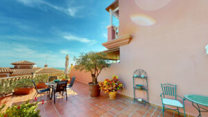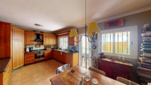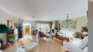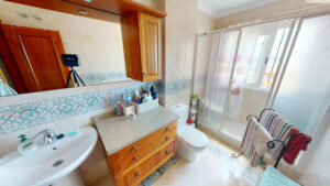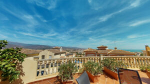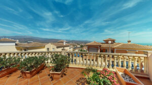 Esta casa de estilo mediterráneo de tres plantas en Viña Málaga, Torre del Mar, combina encanto, comodidad y funcionalidad. Cuenta con 3 amplios dormitorios y 3 baños, además de varias zonas de estar que ofrecen espacio suficiente tanto para relajarse como para recibir invitados. El corazón del hogar es una hermosa biblioteca con estanterías de suelo a techo, que ofrece un rincón acogedor para los amantes de la lectura. La cocina, totalmente equipada, destaca por su cálida carpintería de madera, encimeras de granito y modernos electrodomésticos, convirtiéndose en el espacio ideal para los aficionados a la gastronomía. El dormitorio principal proporciona un ambiente sereno con acceso a un balcón privado desde el que se pueden disfrutar de vistas muy bonitas. Además, la vivienda cuenta con una gran terraza que ofrece impresionantes vistas al mar y a la montaña, convirtiéndose en uno de los principales atractivos de la propiedad. Los baños están elegantemente terminados con detalles de azulejos decorativos, y un despacho adicional completa la distribución, perfecto para teletrabajo o proyectos creativos. La propiedad también cuenta con garaje y agradables espacios exteriores para disfrutar del clima mediterráneo. Los suelos de terracota y las paredes en tonos neutros crean un ambiente cálido y armonioso en toda la vivienda. Las grandes ventanas permiten que la luz natural inunde la mayoría de las estancias, y las obras de arte cuidadosamente seleccionadas aportan personalidad y sofisticación. Su diseño pensado combina funcionalidad con el estilo mediterráneo clásico, ofreciendo un hogar cómodo, elegante y lleno de encanto. Estamos encantados de poder presentar esta propiedad a usted pronto, ya sea personalmente o a través de la visión virtual. Porque este mundo, es único – como nuestra Axarquía. En Andalucía. En la Costa del Sol. Aquí, en el lado soleado de la vida…