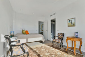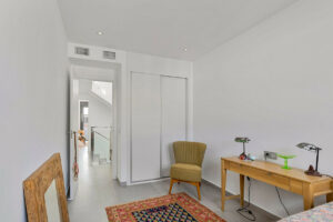 En la planta superior se encuentran dos acogedores dormitorios de invitados, ambos con armarios empotrados, además de un elegante baño para invitados. La lujosa suite principal ofrece un vestidor, un amplio baño en suite y acceso a un balcón orientado al sur con vistas a los hermosos jardines y a la zona de la piscina.