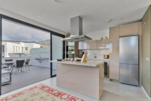 En la planta de entrada encontrarás una cocina contemporánea completamente equipada con acceso directo a una amplia terraza orientada al oeste, ideal para comer al aire libre y recibir invitados. El luminoso y espacioso salón cuenta con una pared completa de ventanales que se abren a un jardín privado con acceso directo a la atractiva piscina comunitaria. Un lavadero independiente y un aseo de invitados completan esta planta.