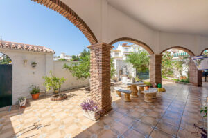 Patio de entrada – Con aproximadamente 120 m², es un espacio perfecto para el ocio, compartir en familia o simplemente disfrutar de los atardeceres de la Costa del Sol.