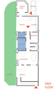 Disfruta del sol durante todo el día con dos amplias terrazas (50 m² en total) orientadas al este y al oeste, además de un jardín privado (48 m²) con zona de juegos (27 m²), lavadero, trastero independiente y aparcamiento privado.