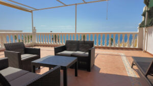 La propiedad cuenta con una gran terraza privada, amueblada para relajarse y disfrutar de las espectaculares vistas al mar, perfecta para vivir plenamente el estilo de vida mediterráneo. En el interior, destaca una cocina moderna de reciente renovación, mobiliario elegante y contemporáneo, y aire acondicionado en toda la vivienda, garantizando el máximo confort durante todo el año.