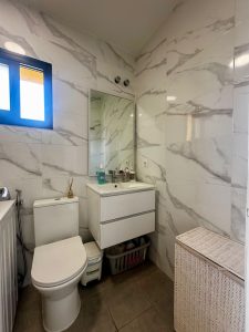 La vivienda principal se distribuye en dos plantas y cuenta con dos amplios dormitorios y dos baños completos. Ambos dormitorios disponen de terraza privada, una de ellas con preciosa vista al mar, ideal para disfrutar de la calma y la luz de la Costa del Sol.
