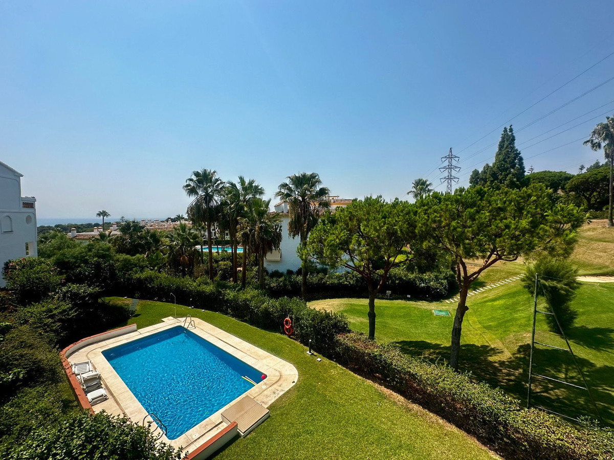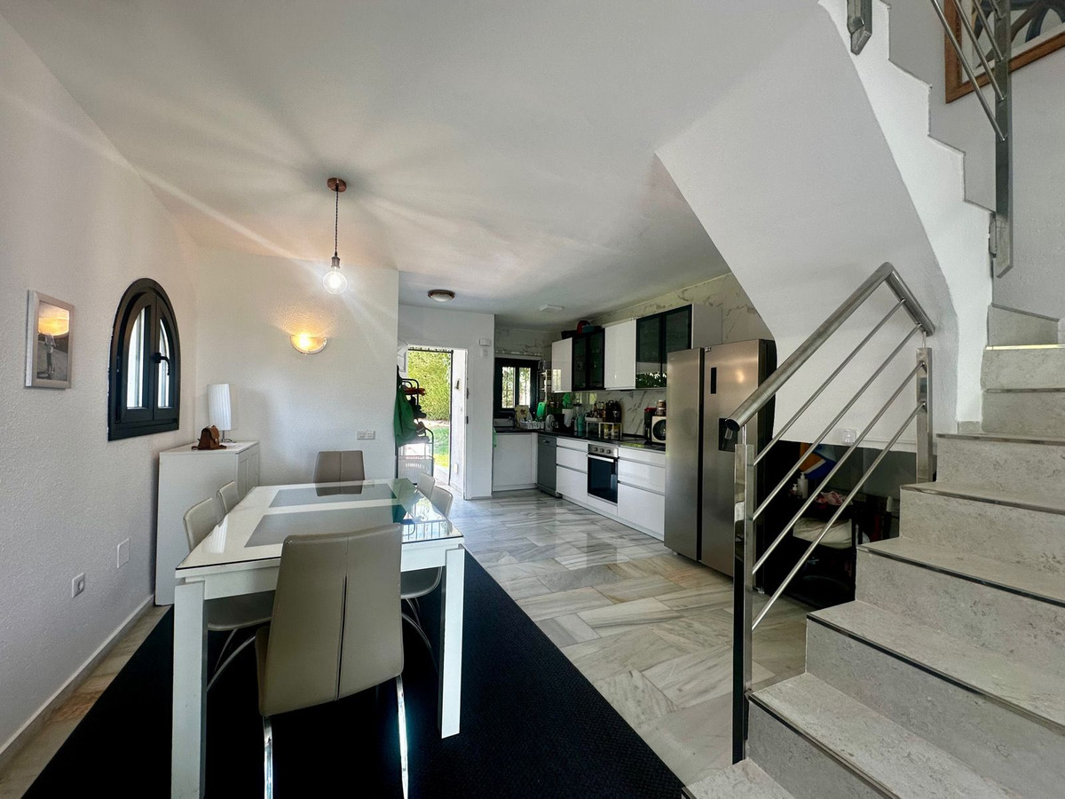 Encantadora casa pareada en Calahonda, ubicada en primera línea de golf dentro de una tranquila urbanización con piscina comunitaria y zonas ajardinadas muy cuidadas.