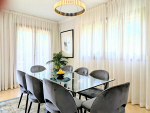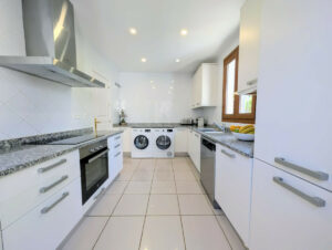En la planta baja entramos en la vivienda con una amplio recibidor, una cocina totalmente equipada con lavadero, un aseo de invitados, un trastero y un amplio salón-comedor con abundante luz natural gracias a sus grandes ventanales. La terraza cubierta ofrece zona de estar y comedor disfrutando de vistas a un precioso jardín con vistas al mar.