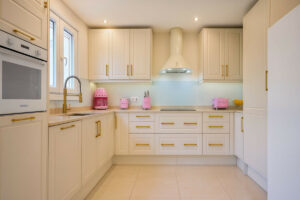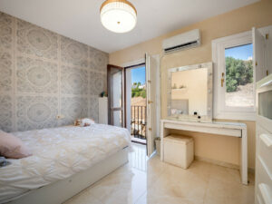 En la planta superior, el dormitorio principal cuenta con baño en suite, mientras que otros dos dormitorios comparten un baño familiar moderno. Todos los dormitorios tienen armarios empotrados. El punto fuerte es la gran terraza solárium con vistas panorámicas a las colinas y al mar Mediterráneo. Es el lugar perfecto para reuniones y ocio, con preinstalación para jacuzzi y cocina exterior.