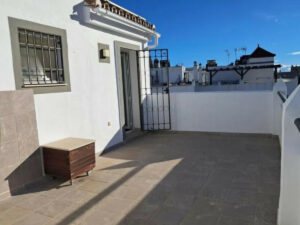 •segunda planta (estudio y sol): cuarto dormitorio grande (actualmente estudio/despacho) que conecta directamente con la soleada terraza en la azotea de 18m² (suelo nuevo 2022), desde la cual se puede ver incluso un trocito del mar y el peñón de Gibraltar.