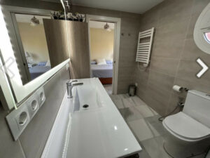 La distribución de la casa en tres plantas es perfecta para familias que buscan espacio y confort. En la planta baja, encontrarás un enorme salón con chimenea y acceso al jardín privado, una cocina reformada, un dormitorio adicional y un baño completo con ducha de obra. Además, dispone de un porche delantero y una zona de aparcamiento privado para varios coches. En la primera planta, el dormitorio principal cuenta con un gran baño y una zona vestidor con luz natural.