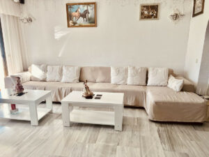 La vivienda dispone de una amplia cocina de concepto abierto, integrada con el salón-comedor, vistas al mar y acceso directo a los jardines comunitarios. Se encuentra en muy buen estado de conservación y ha sido cuidada con esmero.