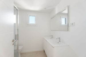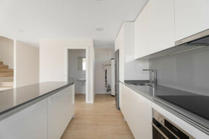 La casa adosada cuenta con cuatro dormitorios de generosas dimensiones, incluyendo una lujosa suite principal con su propio baño privado. Cada uno de los tres baños está equipado con accesorios de alta gama, y la atención al detalle en cada rincón de la vivienda refleja la calidad artesanal en todo el hogar.