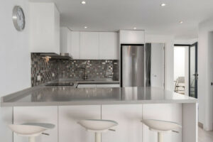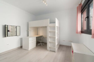 La propiedad se vende completamente amueblada e incluye características de calidad como suelos laminados en los dormitorios, armarios empotrados, aire acondicionado inverter Mitsubishi, mosquiteras, persianas metálicas automáticas y sistema de filtrado de agua potable. Todos los dormitorios tienen acceso a terrazas privadas o compartidas.