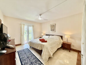 En la planta superior hay cuatro amplios dormitorios y tres baños. La suite principal es un auténtico refugio, con un lujoso cuarto de baño nuevo y un balcón Juliette con impresionantes vistas al campo de golf.