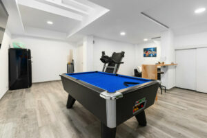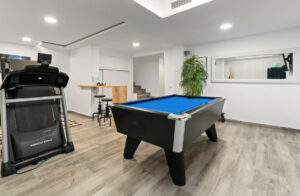 Aquí se ubican dos dormitorios dobles adicionales con armarios empotrados, uno de ellos con baño en suite, además de un segundo baño completo. Una amplia sala de juegos y ocio con mesa de billar ofrece un espacio ideal para el entretenimiento familiar. La vivienda también cuenta con un generoso trastero y la posibilidad de ampliar el sótano en 60 m² adicionales.