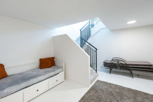 La primera planta ofrece espacio para tres dormitorios: un dormitorio principal con baño en suite y dos dormitorios más con un baño compartido. Un cuarto dormitorio se encuentra en el primer piso, incluyendo un cuarto de baño y vestidor. Desde aquí se puede acceder a la terraza de la azotea, que ofrece unas vistas espectaculares del mar y las regiones costeras. Toda la casa ha sido amueblada con gran estilo y atención al detalle y está lista para entrar a vivir.