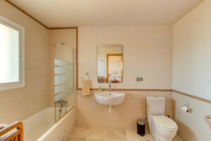 Dos amplios dormitorios, cada uno con vestidor y baño en suite con luz natural. Uno de los dormitorios se abre a una gran terraza con impresionantes vistas al mar y a la montaña; el otro conduce a una acogedora terraza orientada al este, también con preciosas vistas al mar y a la montaña hacia Marbella.