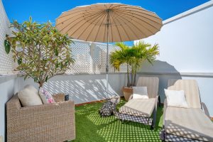 Una fantástica terraza solárium donde donde poder tomar el sol a cualquier hora del día, completa esta bonita y confortable casa, en el centro de la ciudad.