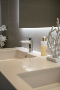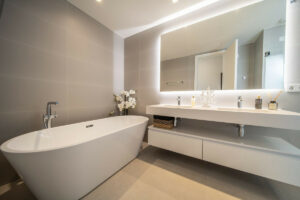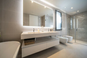 • Baños elegantes con materiales premium y diseño moderno y limpio
