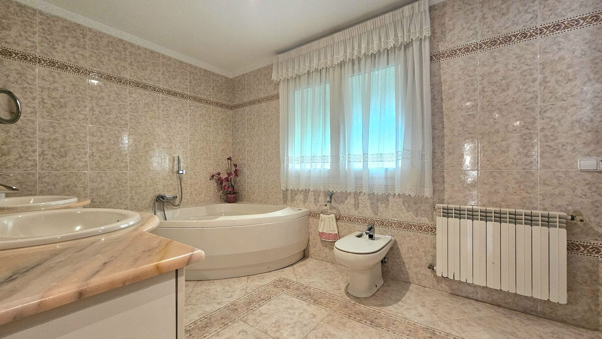 Descubre esta impresionante casa en venta ubicada en la tranquila zona de Las Lagunas, Mijas. Con una superficie construida de 429 m² y útil de 375 m², esta propiedad es ideal para quienes buscan comodidad y elegancia. Disfruta del esplendor natural gracias a su orientación sureste que garantiza luminosidad durante todo el día. La vivienda cuenta con cuatro amplias habitaciones dobles y tres baños completos más dos aseos adicionales, perfectos para familias grandes o visitas frecuentes. El diseño interior combina materiales nobles como madera y granito, creando un ambiente cálido y acogedor en cada rincón; desde el espacioso salón (36 m²) hasta la cocina bien equipada. Además, podrás disfrutar de tu tiempo libre en una amplia terraza privada (74 m²), perfecta para reuniones familiares o momentos relajantes bajo el sol andaluz.
