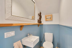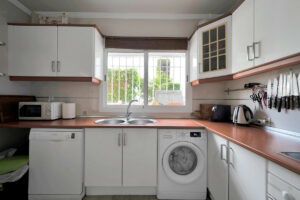 En la planta calle accedemos directamente a través del jardín y el porche. El salón también es mayor que en otras casas, 40 m2, porque se realizó una ampliación, además del porche de 15 m2, en el 2.020. En esta planta encontramos también un aseo de invitados, la cocina independiente y la entrada secundaria.