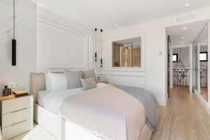 En la primera planta hay tres dormitorios dobles con baño, cada uno con su propio diseño único y personalizado. Todos los baños han sido equipados con un alto nivel de calidad y también disponen de calefacción por suelo radiante.