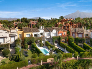 Casa adosada de cuatro dormitorios situada en Nueva Andalucía, Marbella. Una fantástica comunidad con calles tranquilas, amplio aparcamiento y seguridad las 24 horas. A solo unos minutos de la playa y del estilo de vida al aire libre de Puerto Banús.