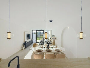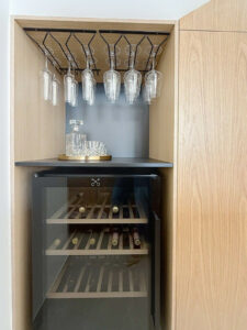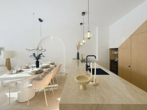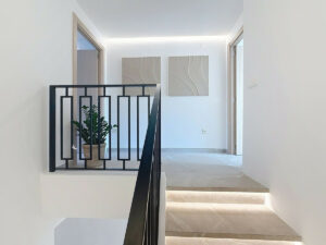 La cocina de diseño incorpora una vinoteca integrada, electrodomésticos Samsung de última generación y una distribución funcional que combina estética y confort. En esta misma planta se encuentran dos dormitorios de invitados que comparten un baño completo, además de un aseo independiente y un práctico utility room.