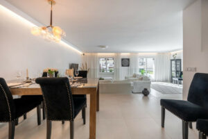 Representada en exclusiva por nuestra agencia, la propiedad se presenta como una casa adosada completamente renovada en Pueblo Arabesque, ubicada en una de las zonas más buscadas de Nueva Andalucía, Marbella.
