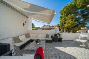 La casa ofrece un diseño pensado para el confort diario, combinando líneas de inspiración escandinava con detalles mediterráneos. Tiene aproximadamente 176 m² en el interior y un solárium de 93 m² equipado con una cocina exterior, área de barbacoa, zona de descanso, espacio para comer, toldo eléctrico y cuarto de lavandería. En total, suma 269 m², con tres habitaciones dobles y una habitación de invitados adicional, todas con baños en suite, así como varias terrazas y balcones que te permiten disfrutar del sol durante todo el día gracias a sus múltiples orientaciones.