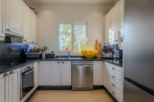 La propiedad se compone de cuatro dormitorios y tres baños, con un excelente potencial para crear una lujosa suite principal con vestidor y baño en suite. Entre sus características adicionales se incluyen un gimnasio privado, dos amplios trasteros, aparcamiento cubierto para dos coches y terrazas en el nivel inferior con acceso directo al jardín.