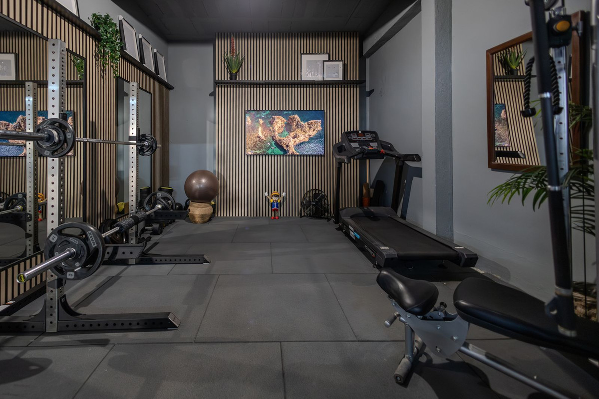 La propiedad se compone de cuatro dormitorios y tres baños, con un excelente potencial para crear una lujosa suite principal con vestidor y baño en suite. Entre sus características adicionales se incluyen un gimnasio privado, dos amplios trasteros, aparcamiento cubierto para dos coches y terrazas en el nivel inferior con acceso directo al jardín.