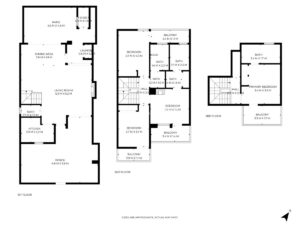 La propiedad, con orientación sudeste, se distribuye en tres plantas: En la planta principal, se accede a través de una amplia terraza delantera de 40 m², ideal como zona de relax. Cuenta con un luminoso salón, aseo de invitados, cocina independiente y acceso a una agradable terraza trasera de 18 m². La primera planta consta de tres dormitorios y dos baños, uno de ellos en suite. Todas las habitaciones tienen acceso a terrazas independientes. La planta superior cuenta con un cuarto dormitorio con terraza y un baño completo.