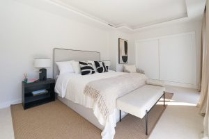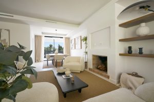 La planta baja cuenta con un dormitorio en suite que da a un patio inglés privado que podría transformarse en un gimnasio o una sala de cine. Las zonas de salón y comedor principales, junto con una cocina Siemens totalmente equipada, dan acceso a una terraza cubierta orientada al suroeste y a un jardín privado con vistas directas al campo de golf Aloha, combinando la elegancia interior con la serenidad exterior. La suite principal, situada en la planta superior, cuenta con una amplia terraza privada, baño en suite y vistas panorámicas de las cuidadas calles del campo de golf y los paisajes circundantes, mientras que dos dormitorios adicionales y un baño compartido completan esta planta.