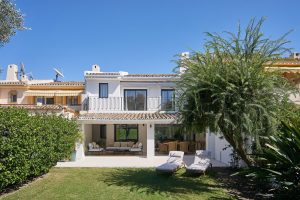 Casa adosada en primera línea de golf Aloha, situada en el prestigioso Golf Valley de Nueva Andalucía, esta casa adosada de tres plantas, con un bonito diseño, ofrece una combinación perfecta entre el encanto mediterráneo y la vida moderna. Recientemente renovada, la propiedad cumple con las expectativas de estilo de vida de los compradores exigentes que buscan comodidad, estilo y una ubicación privilegiada.