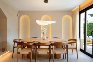 Completamente amueblado y listo para moverse, el diseño interior de la casa refleja una sensibilidad mediterránea contemporánea: líneas limpias, materiales naturales y una paleta de colores sutil que armoniza con la brisa de luz y mar de la costa de Marbella. Cada aspecto ha sido cuidadosamente curado para comodidad, funcionalidad y atractivo atemporal.