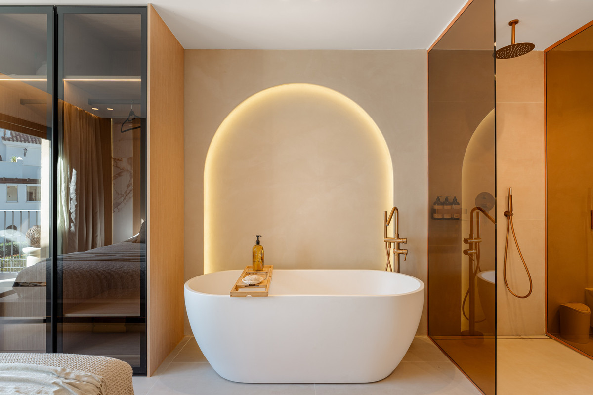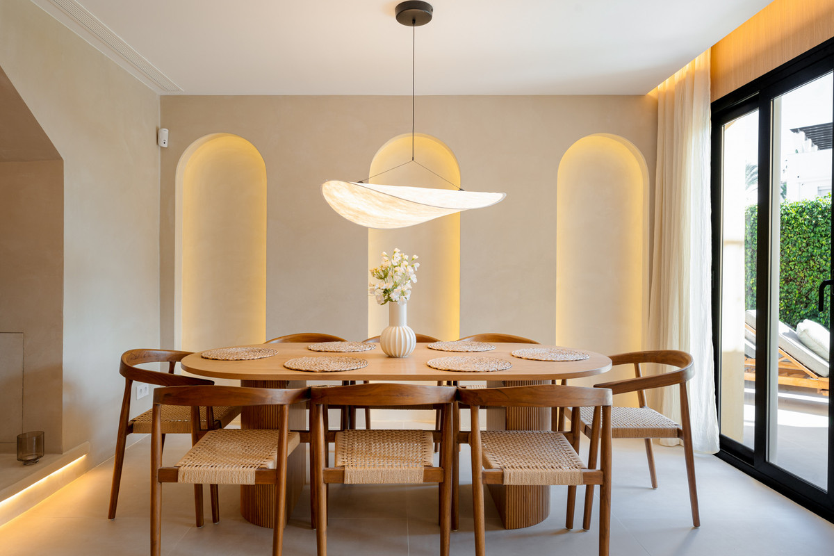 Completamente amueblado y listo para moverse, el diseño interior de la casa refleja una sensibilidad mediterránea contemporánea: líneas limpias, materiales naturales y una paleta de colores sutil que armoniza con la brisa de luz y mar de la costa de Marbella. Cada aspecto ha sido cuidadosamente curado para comodidad, funcionalidad y atractivo atemporal.