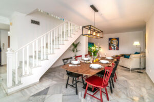 Esta casa adosada modernizada de 4 dormitorios y 3 baños está distribuida en dos plantas y se encuentra en una comunidad pequeña, amigable y bien cuidada.