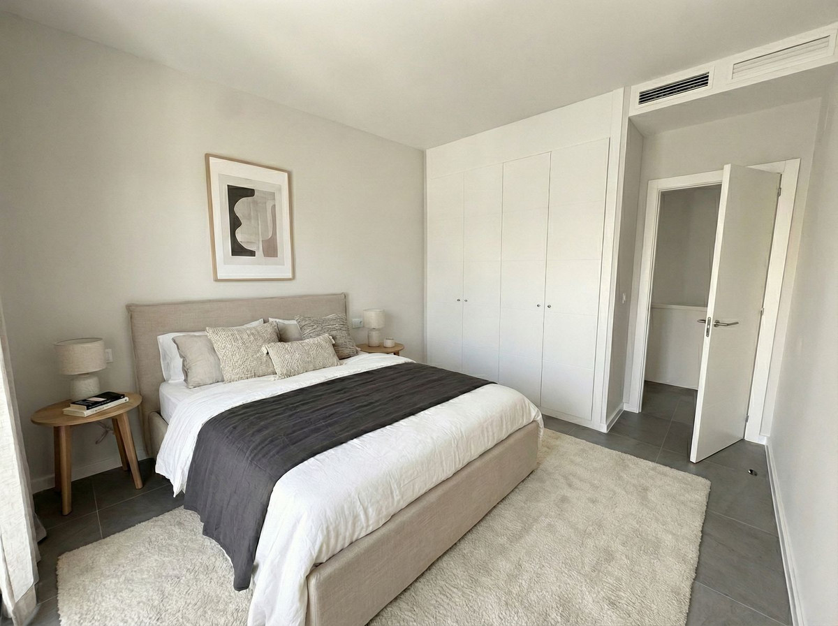 El complejo está cerrado para garantizar su seguridad y privacidad. Las zonas comunes incluyen una piscina, un gimnasio, una zona de coworking y un jardín paisajístico con zona de juegos para niños.