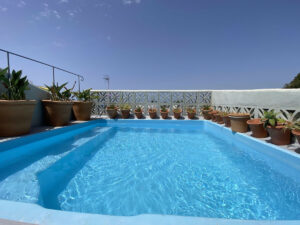Uno de los mayores atractivos de la propiedad es la piscina privada en la azotea, rodeada de plantas y que ofrece un tranquilo oasis urbano: un lujo poco común en una ubicación tan céntrica.