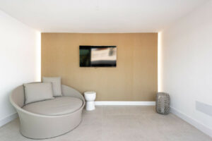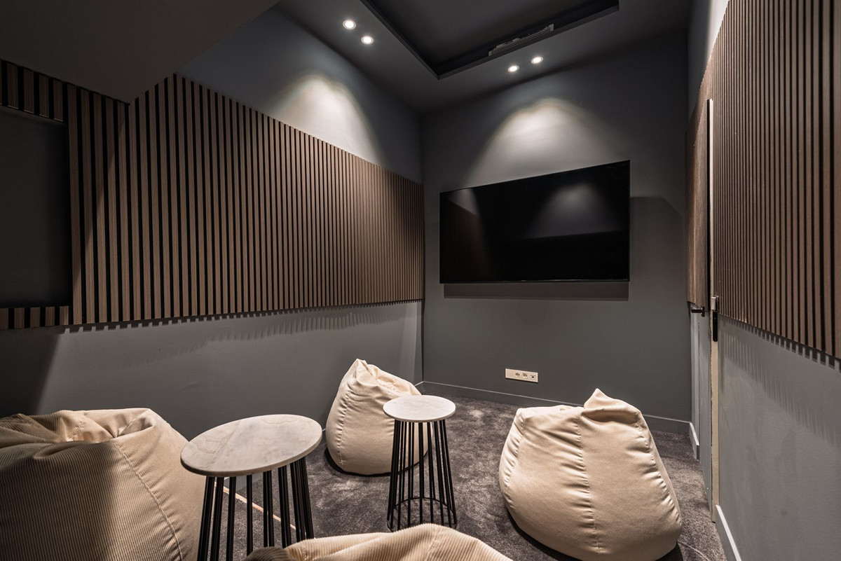 El sótano está diseñado para el ocio y el fitness, con un gimnasio totalmente equipado y una sala de cine. Un dormitorio adicional garantiza la privacidad y comodidad de invitados o familiares.