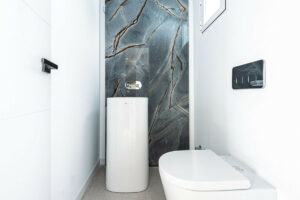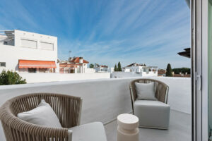 El interior es luminoso y acogedor, con una paleta de colores suaves que realza la sensación de comodidad y amplitud. La planta principal ofrece un amplio salón y un comedor de concepto abierto con una moderna cocina equipada con electrodomésticos integrados. En la planta superior, tres dormitorios y dos baños ofrecen un amplio espacio, mientras que la planta superior cuenta con una soleada terraza con vistas a la naturaleza circundante.