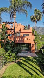 Ubicada dentro de la exclusiva y segura comunidad de Altos de Puente Romano en la Milla de Oro de Marbella, esta casa adosada de esquina combina diseño moderno, confort y un estilo de vida costero relajado. Inundada de luz natural y rodeada de exuberantes jardines subtropicales, sus ~300 m² están diseñados para ofrecer elegancia diaria y facilidad para el entretenimiento.
