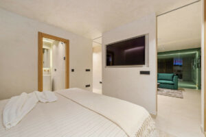 Los niveles superiores cuentan con dormitorios de generosas dimensiones, incluida una suite principal con vestidor y un baño en suite de diseño. Varias terrazas ofrecen opciones para comer, relajarse y recibir invitados al aire libre, incluyendo un solárium en la azotea equipado con barbacoa integrada, jacuzzi y vistas panorámicas a la vegetación circundante. Un garaje privado garantiza comodidad y seguridad, mientras que la distribución maximiza la privacidad para todos los residentes.