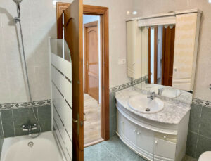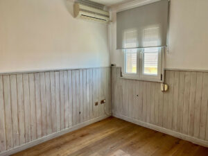 Primera planta: Tres dormitorios espaciosos con armarios empotrados y aire acondicionado. El dormitorio principal dispone de vestidor y baño en suite. Dos baños completos en total en esta planta.