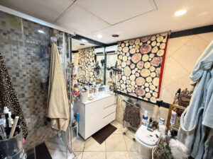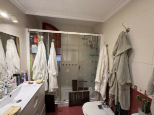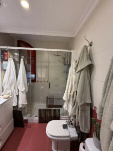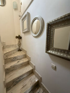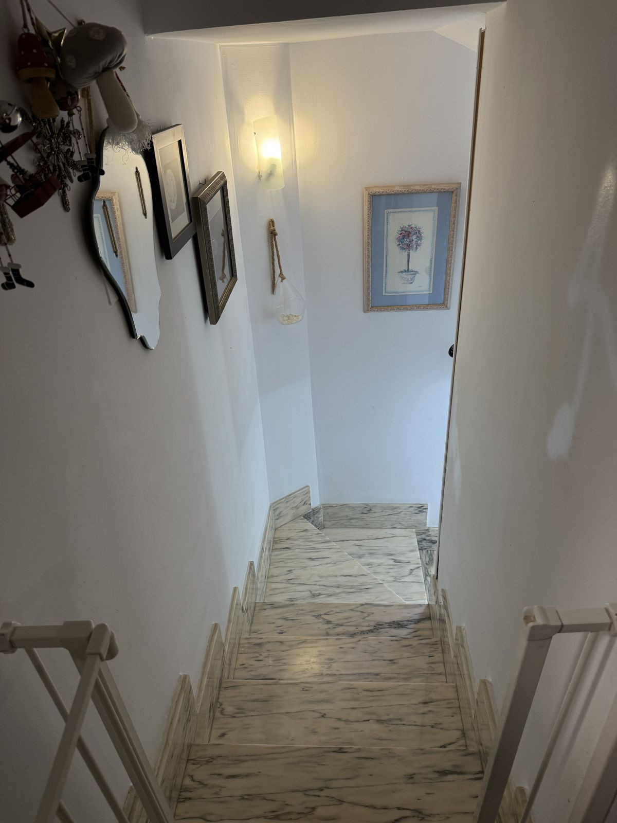 En la planta superior hay otros dos dormitorios con baños, cada uno con terraza. Desde la más grande se tiene una vista parcial del mar Mediterráneo.