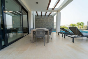 Algunas de las cualidades que se ofrecen son techos altos, puertas y ventanas de vidrio de piso a techo, persianas eléctricas internas, iluminación a medida, calefacción por suelo radiante y aire acondicionado, todo lo cual se suma a la comodidad de vivir aquí en la costa.