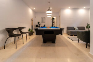 Sótano amplio con un garaje ideal para guardar su carrito de golf que también se podría ampliar. También hay un trastero. Este nivel ofrece 2 dormitorios dobles más con luz natural proveniente de los patios de arriba y un baño completamente equipado con lavadoras. Hay una acogedora sala de estar con mesa de billar y espacio para ver televisión, películas o deportes. Con estacionamiento privado frente a la propiedad, hay más estacionamiento para invitados disponible.