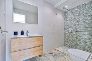 La casa ofrece vistas al mar desde la planta superior y a la montaña desde el otro lado, creando un ambiente único entre naturaleza y mar.